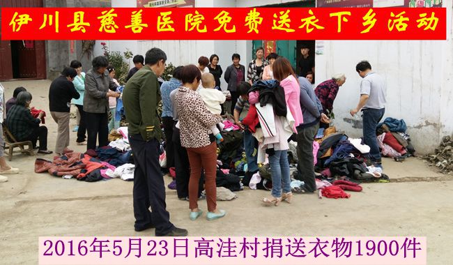 2014年9月30日,医院办起了伊川县的一家慈善超市,旨在为医院职工和社会各界爱心人士与弱势群体之间搭建了一个展示爱心的捐赠平台,帮助急需衣物的就诊困难患者和社会特困群体,弘扬人间真情和大爱。