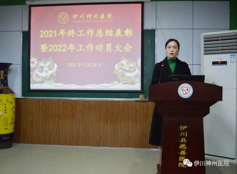 坚持不懈努力,取得优异成绩的2021年即将过去,面对良好的发展机遇,迎接新的挑战2022年已经到来,在辞旧迎新之际,12月26日,伊川神州医院隆重举行2021年工作总结表彰暨2022年工作动员大会。
